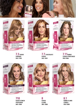 7.3 RUBIO 7.7 CHOCOLATE 7.11RUBIO DORADO RUBIO CENIZA PROFUNDO SKU: 5702 SKU: 5691 SKU: 5682 710 8 8.1 RUBIO CENIZA RUBIO RUBIO CLARO PROFUNDO CLARO CENIZA SKU: 5698 SKU: 5686 SKU: 5690